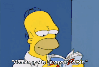"Gomer upsets Sergeant Carter." Oh, I'll never forget that episode. Pyle! Shazam! Pyle! Shazam! Pyle! Shazam! Shazam. Stop remembering TV and get back to work.