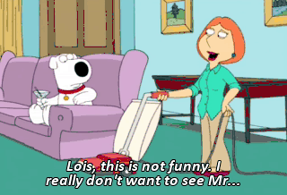 Lois, this is not funny. I really don't want to see Mr... (VACUUM WHIRRING) Stop! Stop it! Stop it! It's scaring me! Leave me alone! It's so loud! (BARKING) Stop! Stop it!