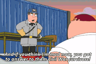 And if you think I'm mad now, you got to answer to them Civil War survivors!