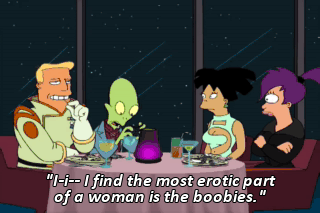 "I-i-- I find the most erotic part of a woman is the boobies." Kif!