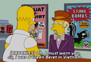 (CHUCKLES) Oh, I must warn you, sir, I was a Green Beret in Vietnam. The things I saw there are what made me crazy! Sir, this is a class two plutonium fissure reactor. If I turn this dial,