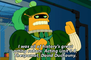 I was all of history's great acting robots: Acting Unit 0.8, Thespomat, David Duchovny.