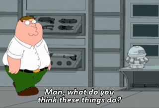 Man, what do you think these things do? (IN PETER'S VOICE) Guess it doesn't do anything. (IN LOIS' VOICE) Well, that seems odd. (BOTH YELLING) Oh, my God, Peter! You're me! Holy crap!