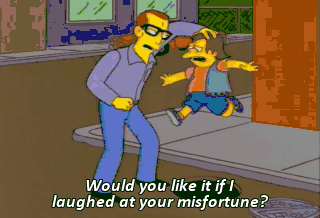 Would you like it if I laughed at your misfortune? Huh? Maybe we should find out. Now march. Hey, everybody. Look at this. It's that boy who laughs at everyone.