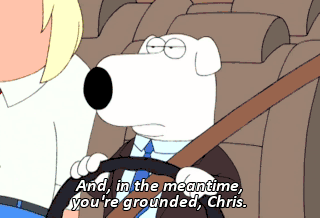 And, in the meantime, you're grounded, Chris. Oh, Come on. That sucks! Do you want us to pull over? I don't care what you do! oh, We'll pull over. We'll pull over. Pull over.