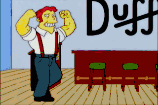 From juggernauts in Hollywood, California, Titania. And now, the local lug who fills your mug with the drug you chug-- oh, yeah-- give it up for Moe Szyslak. Hello, Springfield. How ya--