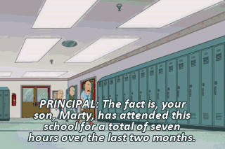 PRINCIPAL: The fact is, your son, Marty, has attended this school for a total of seven hours over the last two months.