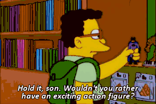 Hold it, son. Wouldn't you rather have an exciting action figure? Ah, but only Batman fits in my Batmobile. Are you nuts? The Thing fits in there perfectly.