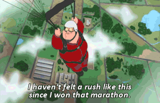 I'm Bob Costas, here with Boston Marathon winner Peter Griffin.