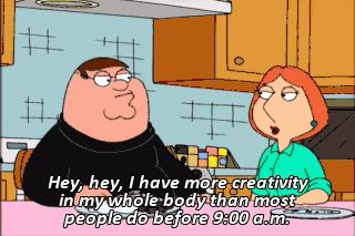 Hey, hey, I have more creativity in my whole body than most people do before 9:00 a.m.