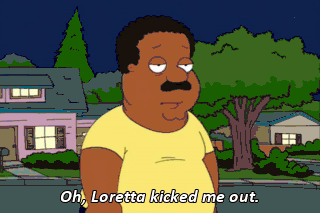Oh, Loretta kicked me out. Oh, Cleveland, I am so sorry. You can stay here as long as you like. Cleveland, sit down.