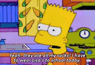 Yeah, they ate all my socks! I have to wear Lisa's to school today.