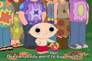 Does anybody want to buy my shirt? I'll trade you my shirt for a grilled cheese! So, what happened, sport? Come on, talk to your pal, Stewie. All right, but only because I've got to tell somebody.