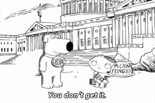 Here comes an overweight cat with dollar signs for eyes, and a hat that says "Social Security"