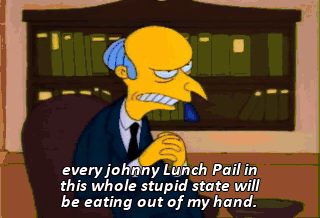 Oh, hello, friends. I'm Montgomery Burns, your next governor,
