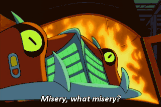 Misery, what misery? I love killing people-- squishing them till their organs squirt out like chunky mustard.
