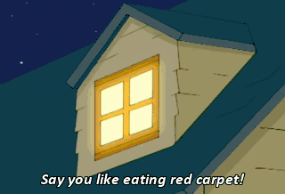 Say you like eating red carpet! PETER: I like eating red carpet. Giggity.