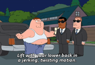 Lift with your lower back in a jerking, twisting motion.
