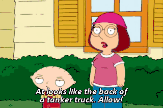 At looks like the back of a tanker truck. Allow! What do you think's inside? Maybe it's candy! - Chris, no! - Lois, Lois, let him dream.