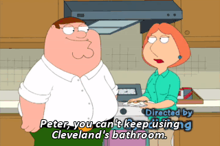 Peter, you can't keep using Cleveland's bathroom. Oh, my God. Yes, I can.