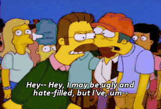 Hey-- Hey, I may be ugly and hate-filled, but I've, um-- What was the third thing you said? Homer, you are the worst human being I have ever met. Hey, I got off pretty easy.