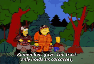 Remember, guys. The truck only holds six carcasses, so don't shoot nothin' but trophy bucks, huh? Ah, we should have just stayed at the bar and shot some rats.