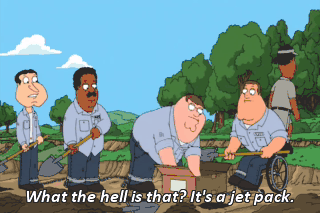 What the hell is that? It's a jet pack. I'll come back for you guys, I promise. You're my friend and everything, and I feel bad saying this, but I wanted to see you fail.