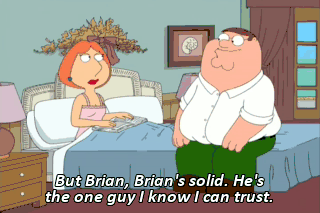 But Brian, Brian's solid. He's the one guy I know I can trust. Brian tried to have sex with me. Was he bigger than me? "...and they told Peter to stay away from the Wolf.