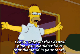 Lenny, without that dental plan, you wouldn't have that diamond in your tooth. Yoink! Hey!