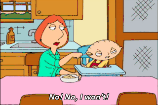 No! No, I won't! Get that puree of loathsomeness away from me! But you love mashed turkey and peas. I'm sorry. What was that? I'm Sorry. I didn't quite catch that. Did you just tell me what I love?