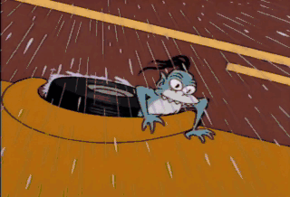 The gremlin's takin' off the wheel! Stop the bus or we're all gonna die! Aaah! Take me bridle and lash his hands to the seat!