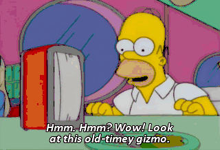Hmm. Hmm? Wow! Look at this old-timey gizmo. I feel like I've gone back in a time machine. Dad, they have those everywhere. What an age we live in.