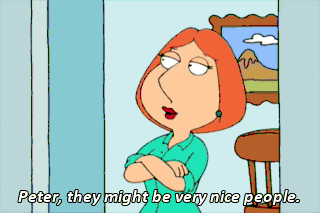 Peter, they might be very nice people. "Very nice people." Yeah, that's what they always say. Then you open up the septic tank and bam! Skeleton city!