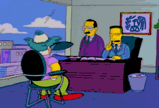 We're just going to garnish your salary. Garnish my celery? Please, Krusty. No jokes. Who's joking? Oh, I don't know what you're saying. It all sounds so crazy to me.