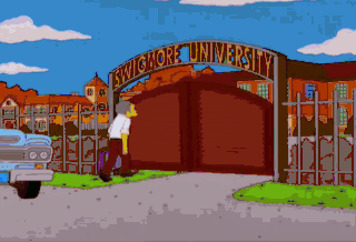 Ah, geez. The old college clock. Man, when's the last time Moe cleaned this? Hey, Homer, another Duff.