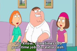 You know, sometimes I do part-time jobs for extra cash. (VIOLIN SCREECHING) Gimme money. Gimme money. Gimme money. Gimme money.