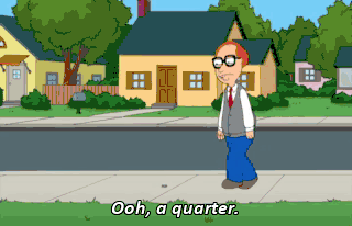 Ooh, a quarter. Who cares what that doctor found on my nuts? This is a good day. It worked. I don't believe it. It worked. Brian, there you are. Where have you been? Meg, where's Stewie? Stewie? Who's Stewie?