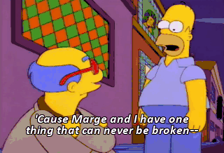 'Cause Marge and I have one thing that can never be broken-- a strong marriage built on a solid foundation of routine.