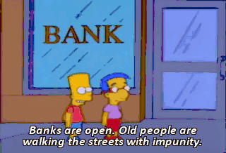 Banks are open. Old people are walking the streets with impunity. And look! Barney's not even drunk yet. Morning, boys. Can't stop to chat. - Time is money. - Morning, Barney.