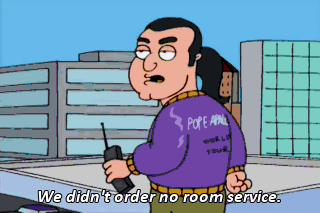 We didn't order no room service.