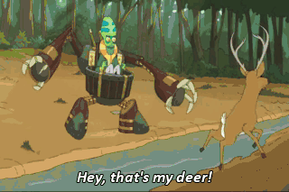 Hey, that's my deer! Aaaaaaah! Raah! I hope your god is as big a dick as you. My god's the biggest dick that's never existed.