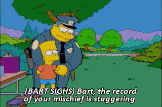 (BART SIGHS) Bart, the record of your mischief is staggering.