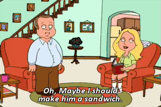 Oh, Maybe I should make him a sandwich. Oh, Dad. That's your solution to everything.
