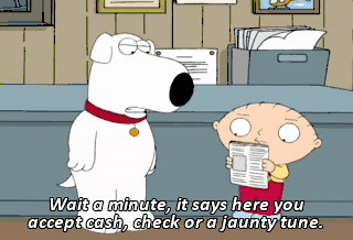 Wait a minute, it says here you accept cash, check or a jaunty tune.