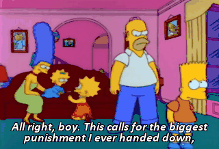 All right, boy. This calls for the biggest punishment I ever handed down, and this time it's gonna stick. Come on, Homer. This isn't funny.