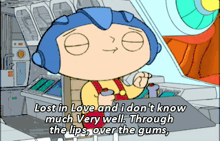 Lost in Love and i don't know much Very well. Through the lips, over the gums, Look out testicles, here I come!