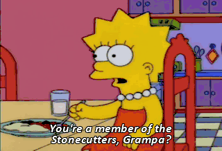 You're a member of the Stonecutters, Grampa? Oh, sure. Let's see. Mmm-- I'm an Elk, a Mason, a Communist-- I'm the president of the Gay and Lesbian Alliance for some reason.