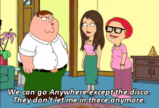 We can go Anywhere except the disco. They don't let me in there anymore. Ow! Oh! Crappy Mexicans and your glass candy!