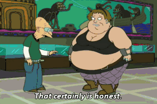 That certainly is honest. It's better for us to both just be ourselves. You, wrinkled as a prune-- You, fat as the queen of sea cows. I love you! Oh, my!
