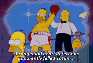 A congenital heart defect has apparently felled Tatum... moments before he could step into the ring. And, now, please welcome back into decent society,